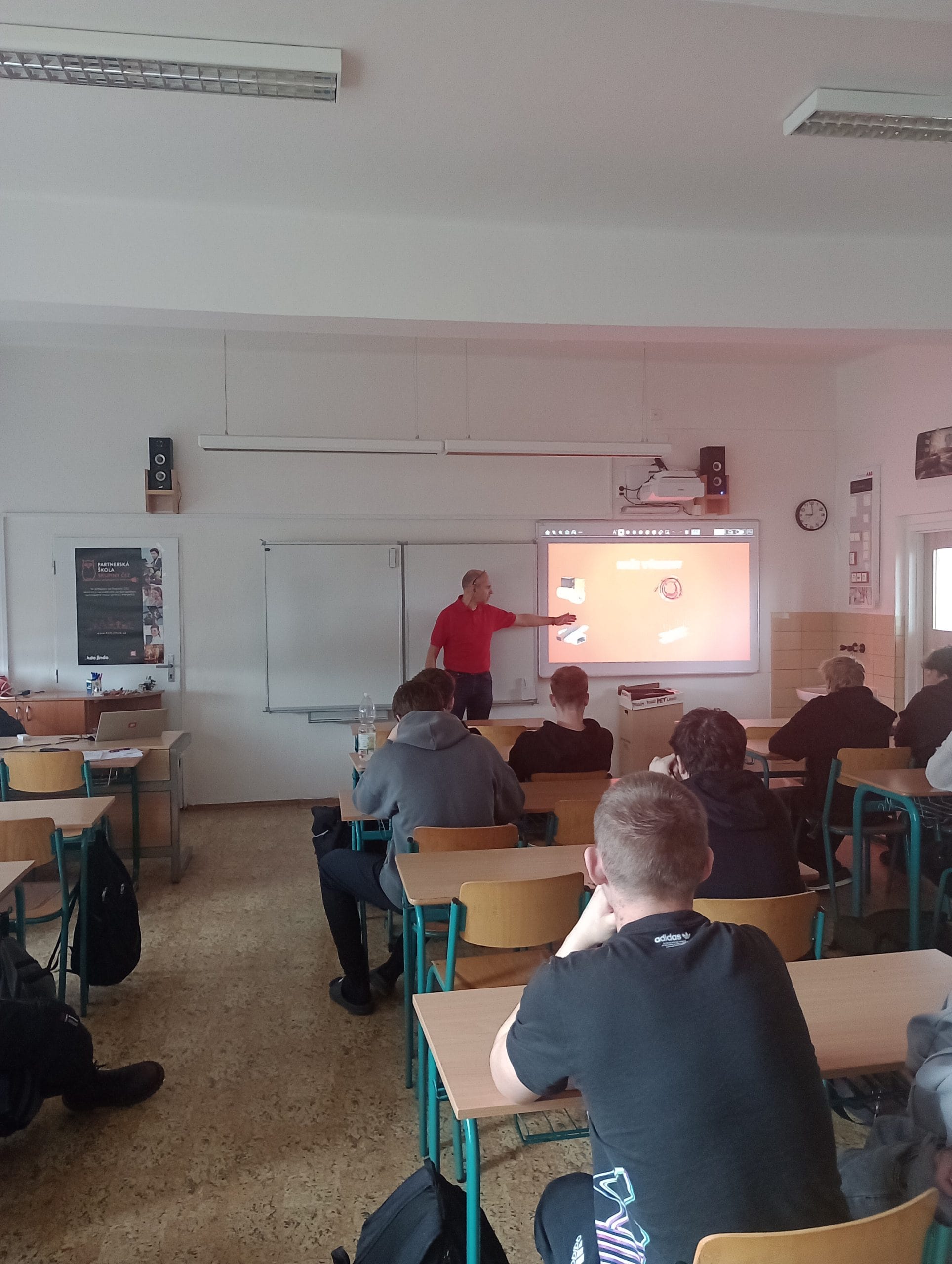 Dne 31. 3. 2026 se v budově školy pro žáky třídy 3E uskutečnila odborná přednáška zaměřená na elektromateriál společnosti KOPOS. Přednášku vedl pan Martin Zuzaňák, který studentům přiblížil široké spektrum produktů a jejich praktické využití v elektrotechnické praxi.